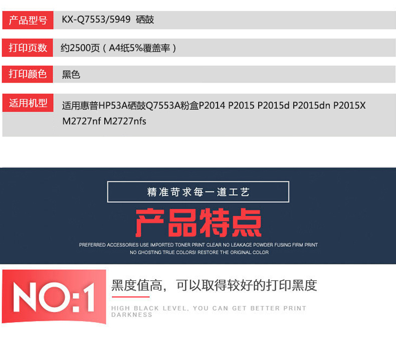 凱欣標(biāo)準(zhǔn)版 KX-Q7553/5949粉盒 適用惠普HP53A硒鼓Q7553A粉盒P2014 P2015 P2015d P2015dn 全國統(tǒng)一價:146元