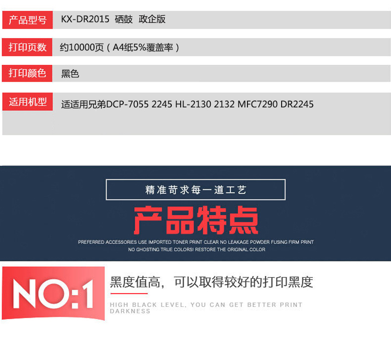 凱欣KX-DR2015 KX-2015硒鼓適用兄弟DCP-7055 2245 HL-2130 2132 MFC7290 DR2245 全國(guó)統(tǒng)一價(jià):189元