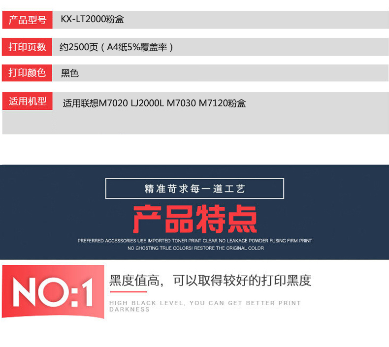 凱欣標準版 KX-LT2000粉盒 適用聯(lián)想M7020 LJ2000L M7030 M7120 粉盒 全國統(tǒng)一價:136元