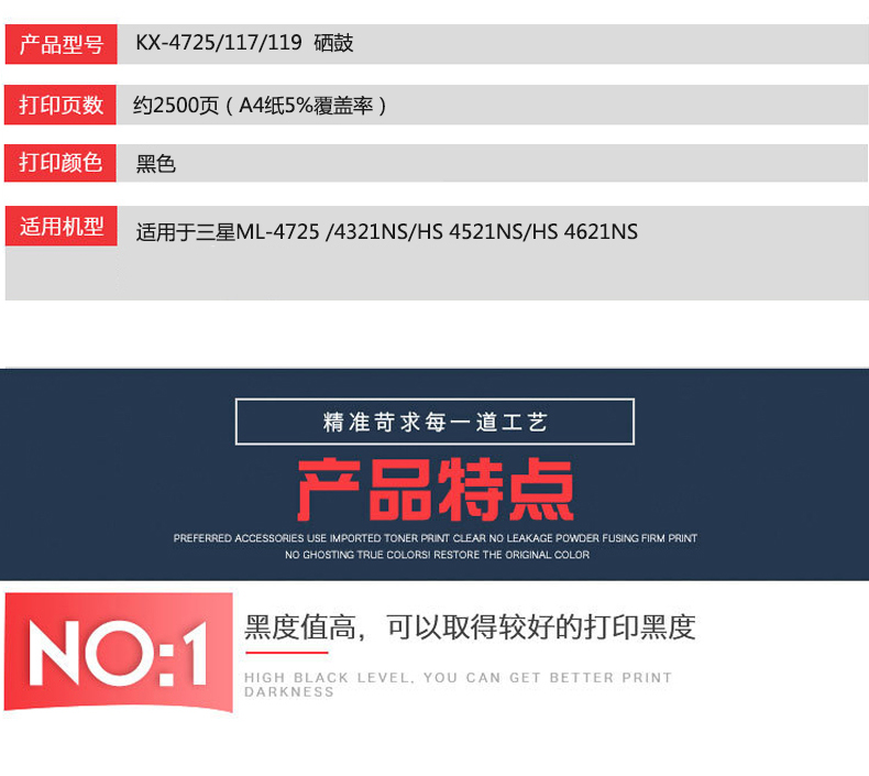 凱欣標(biāo)準(zhǔn)版 KX-SCX4725/117/119粉盒 適用于三星 ML-4725 /4321NS/HS 4521NS/HS 新款/4621NS 全國統(tǒng)一價:166元