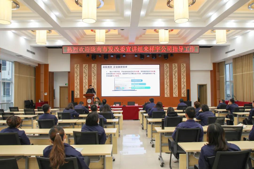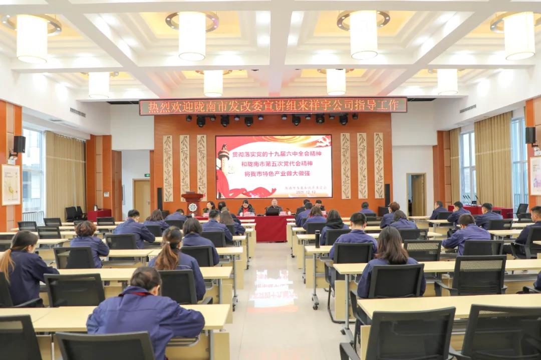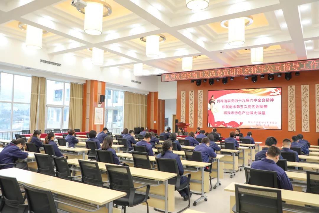 市發(fā)改委宣講團(tuán)走進(jìn)祥宇生態(tài)產(chǎn)業(yè)園宣講黨的十九屆六中全會(huì)及隴南市第五次黨代會(huì)精神。