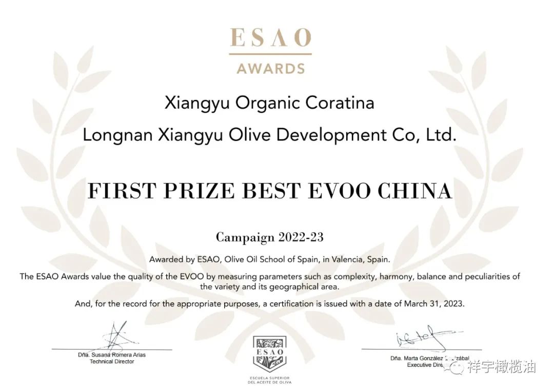 “ESAO Awards”中榮獲中國(guó)最佳特級(jí)初榨橄欖油一等獎(jiǎng),