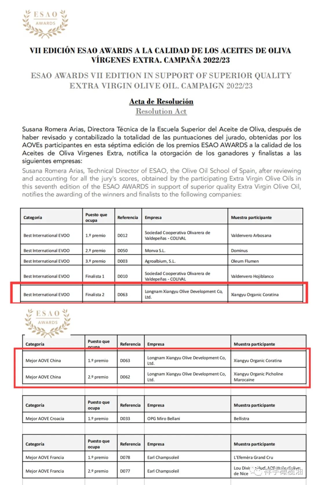 ESAO獎(jiǎng)是由Escuela Superior del Aceite de Oliva